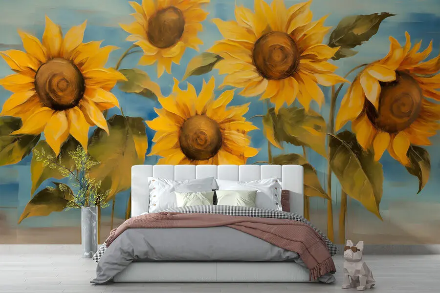 16.08 €8.85 €Fotobehang Schilderij van zonnebloemen
