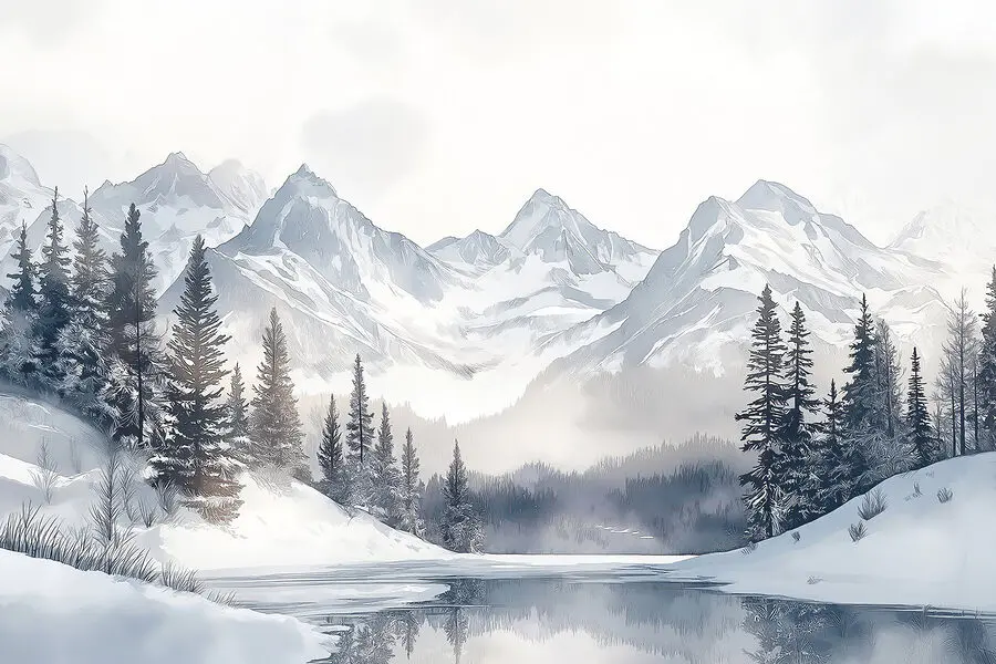 15.51 €9.30 €Fotobehang Tekening van een besneeuwde bergketen