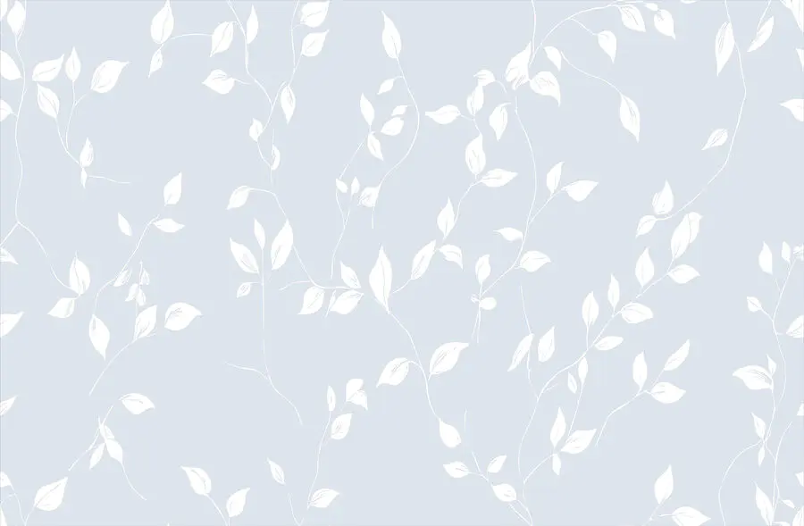 Fotobehang Witte bladeren op een blauwe achtergrond