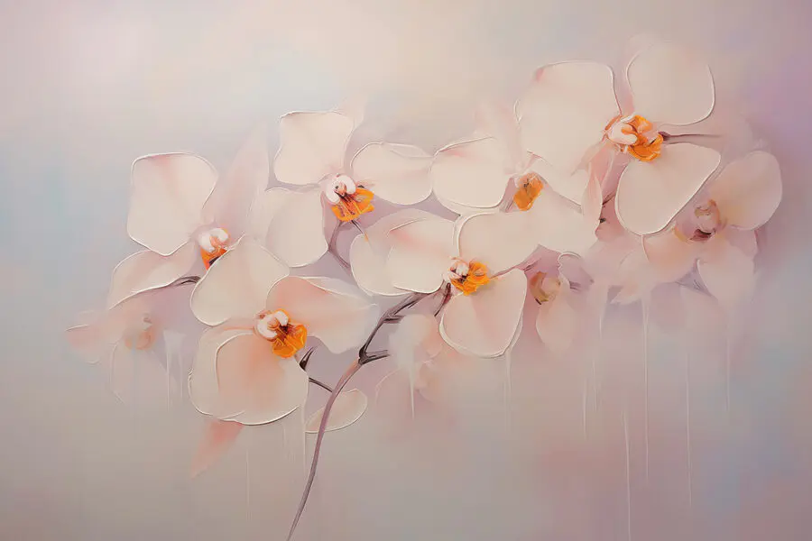 Fotobehang Schilderij van witte bloemen