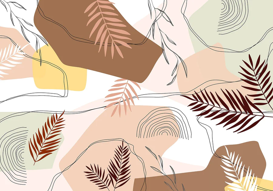 Fotobehang Patroon van bladeren en vormen