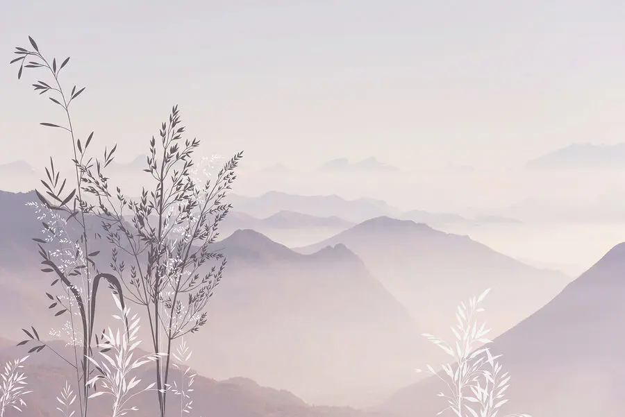 16.31 €9.79 €Fotobehang Landschap van bergen met bomen en mist