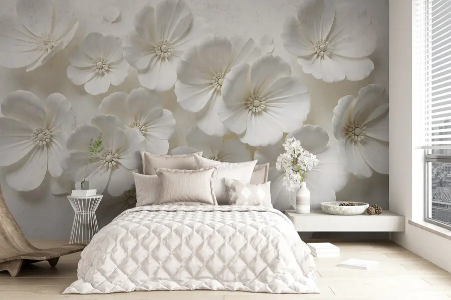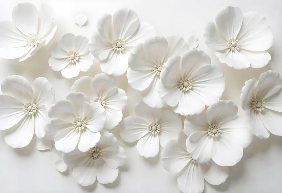 15.51 €9.30 €Fotobehang Witte bloemen met bladeren