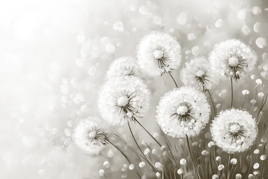 16.08 €8.85 €Fotobehang Zwart-wit afbeelding van paardenbloemen
