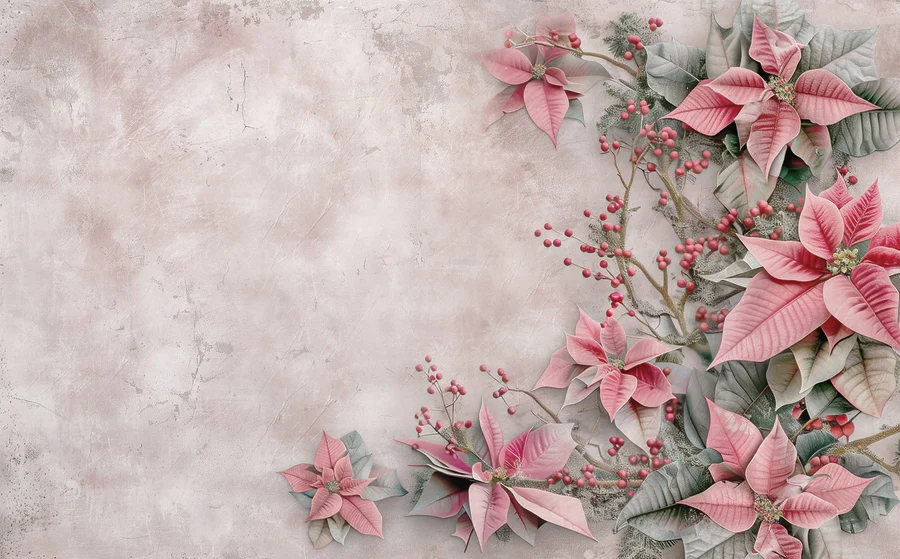 Fotobehang Roze bloemen en bessen op een wit oppervlak