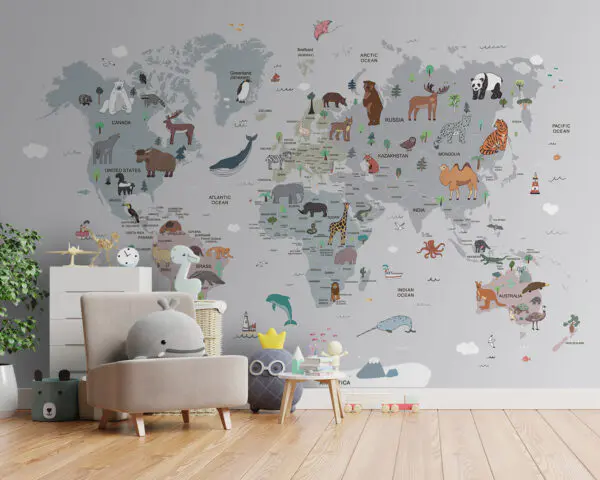 18.22 €9.11 €Fotobehang Wereldkaart met dieren