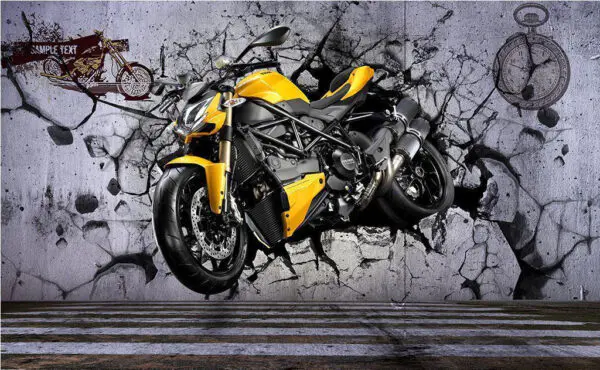16.31 €9.79 €Fotobehang Gele motorfiets op een muur