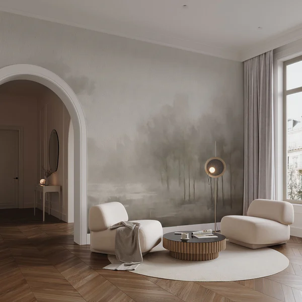 16.31 €9.79 €Fotobehang Mistig landschap met bomen