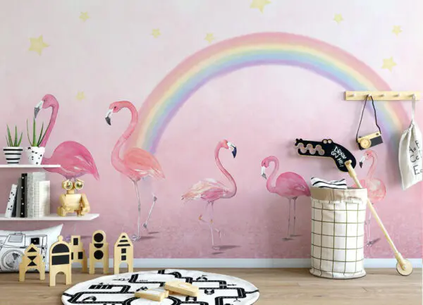 16.88 €10.13 €Fotobehang Groep flamingo’s met een regenboog