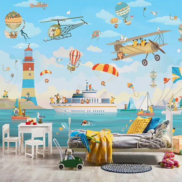 16.88 €10.13 €Fotobehang Cartoon dieren vliegen over een boot