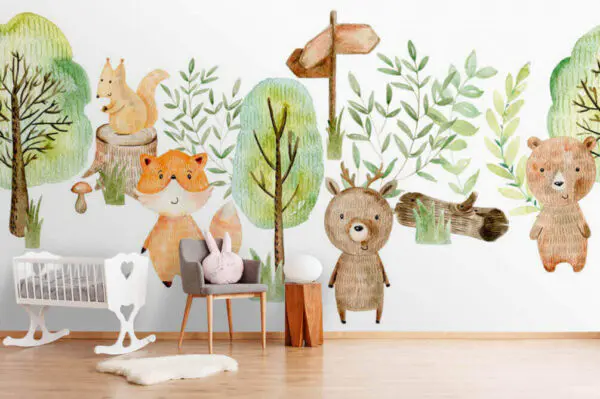 16.31 €9.79 €Fotobehang Aquarel illustratie van dieren en bomen