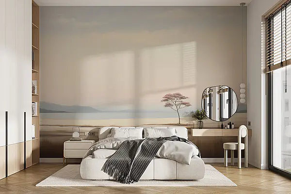 15.51 €9.30 €Fotobehang Boom met witte bloemen en bergen