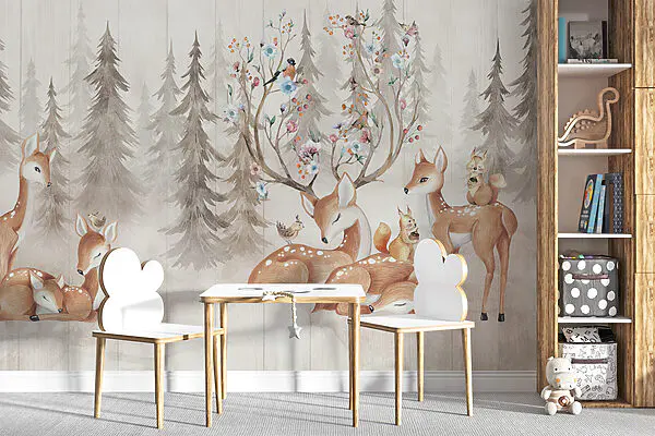 16.31 €9.79 €Fotobehang Een groep herten met een groep babyherten