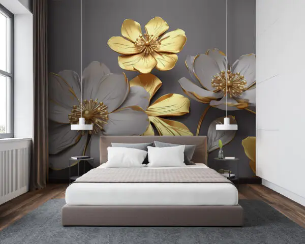 18.22 €9.11 €Fotobehang Groep bloemen op grijze achtergrond
