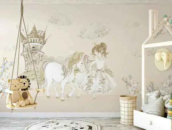 18.22 €9.11 €Fotobehang Meisje en een eenhoorn