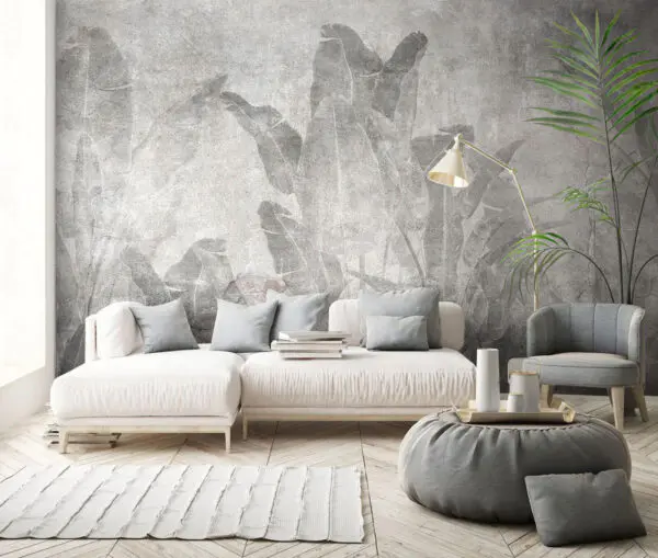 16.31 €9.79 €Fotobehang Groep bladeren op een grijze achtergrond