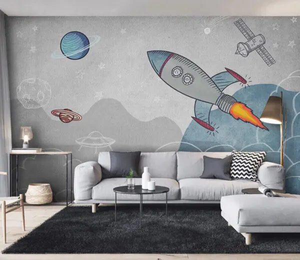 18.22 €9.11 €Fotobehang Raket vliegt door de wolken