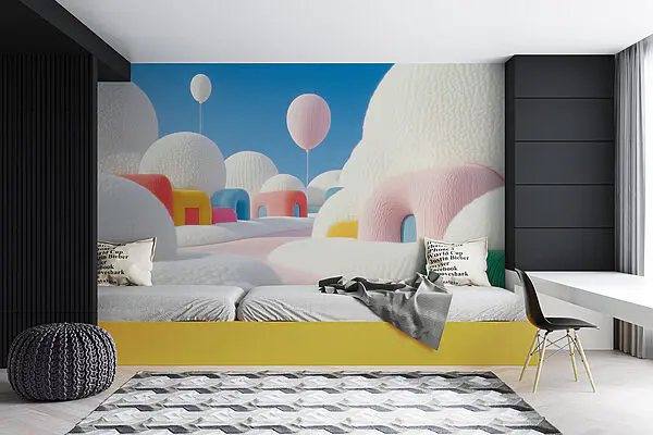 15.51 €9.30 €Fotobehang Landschap met ballonnen en gebouwen