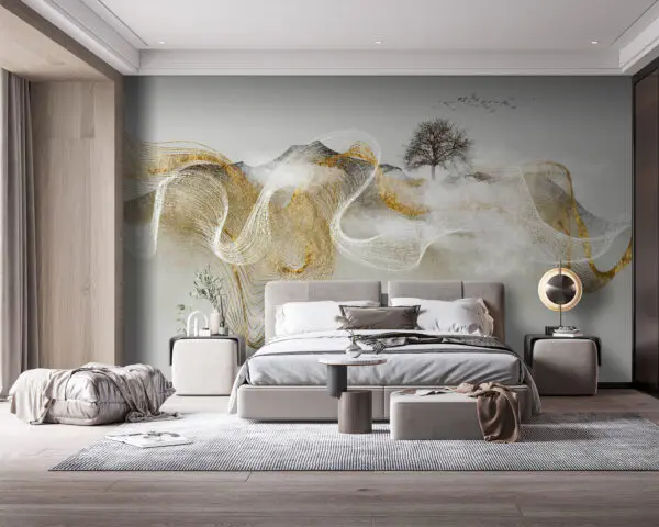 15.51 €9.30 €Fotobehang Schilderij van een landschap met mist en bladeren