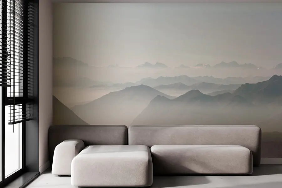 16.31 €9.79 €Fotobehang Mistig landschap met bergen
