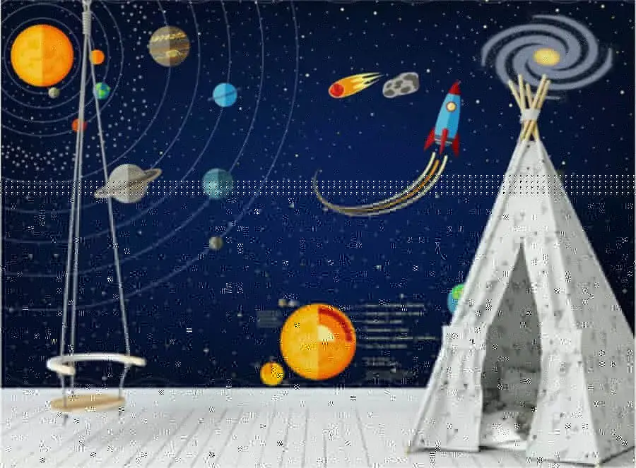15.51 €9.30 €Fotobehang Cartoon ruimte scène met planeten en sterren