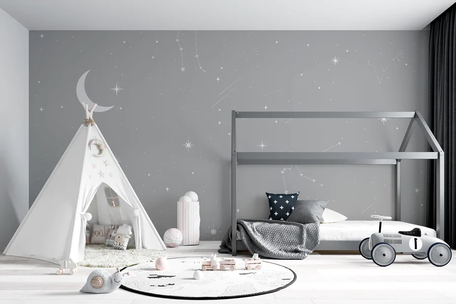Fotobehang Grijze lucht met sterren en maan