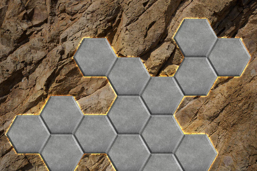 Fotobehang Stenen zeshoeken op een rots