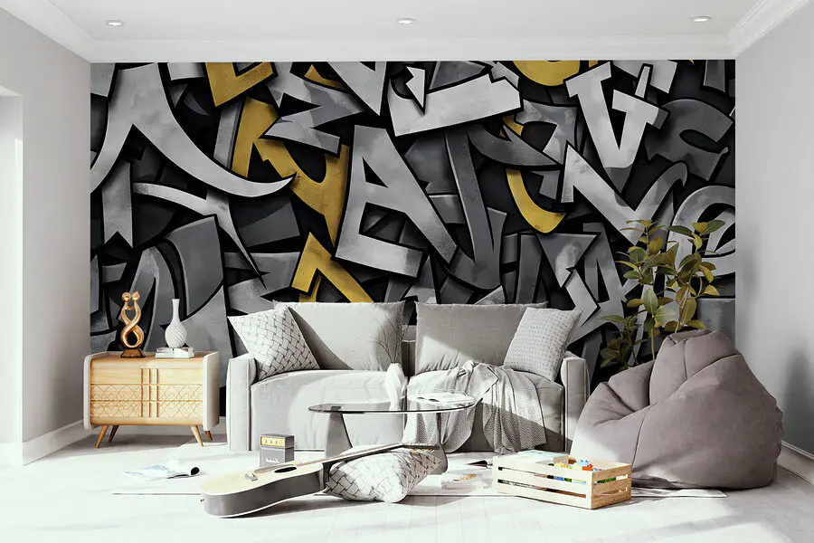 16.31 €9.79 €Fotobehang Een zwart met gele graffiti
