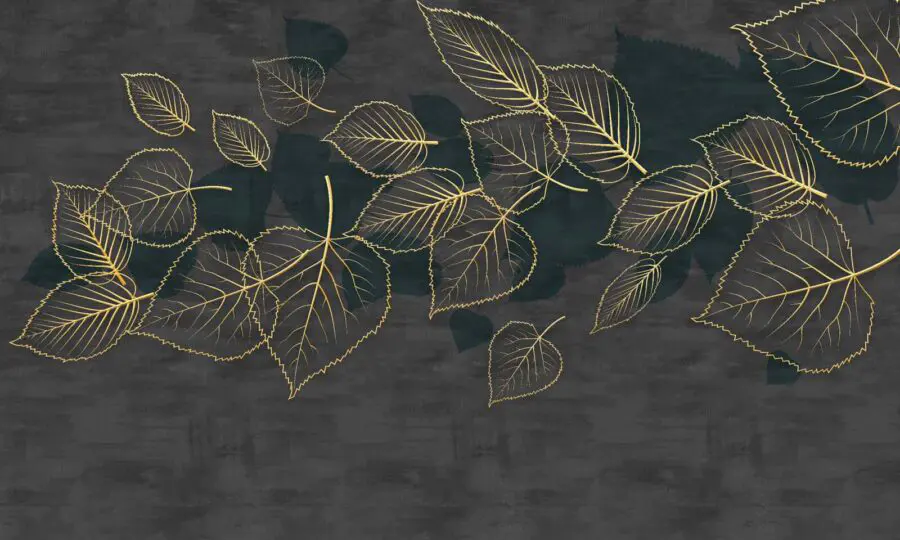 Fotobehang Tekening van bladeren op een zwarte achtergrond