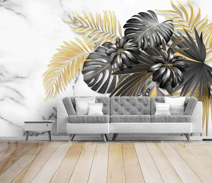 Fotobehang Elegant gebladerte op een marmeren achtergrond