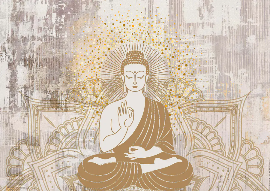 Fotobehang Schilderij van een persoon zittend in lotushouding