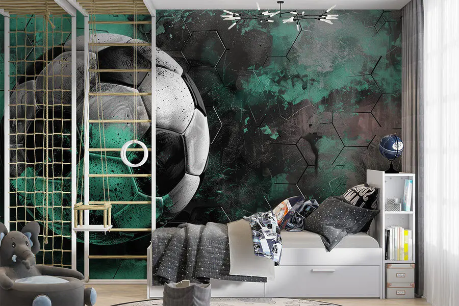 Fotobehang Voetbal op een groene en zwarte achtergrond