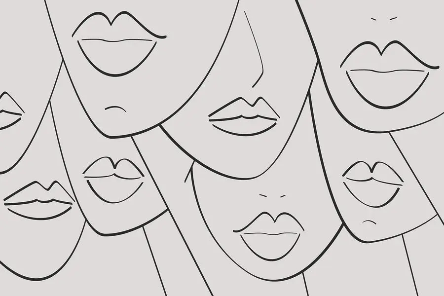 Fotobehang Groep gezichten met lippen en lippen getekend in zwart-wit