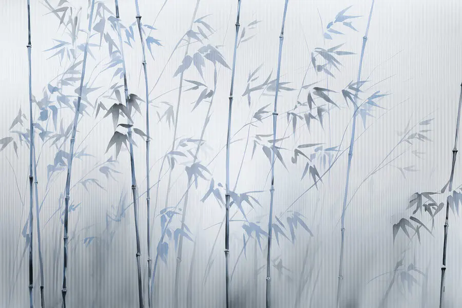 Fotobehang Zachte bamboesilhouetten in zachte tinten