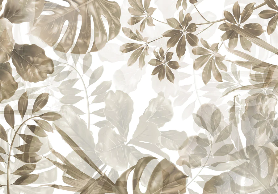 Fotobehang Zachte tinten van gelaagde bladerkunst