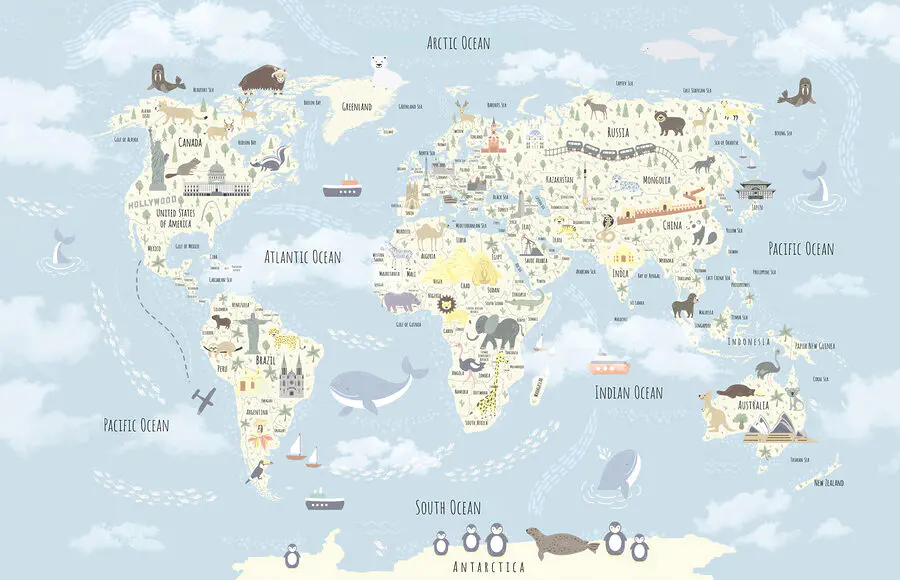 15.51 €9.30 €Fotobehang Wereldkaart met dieren en vogels