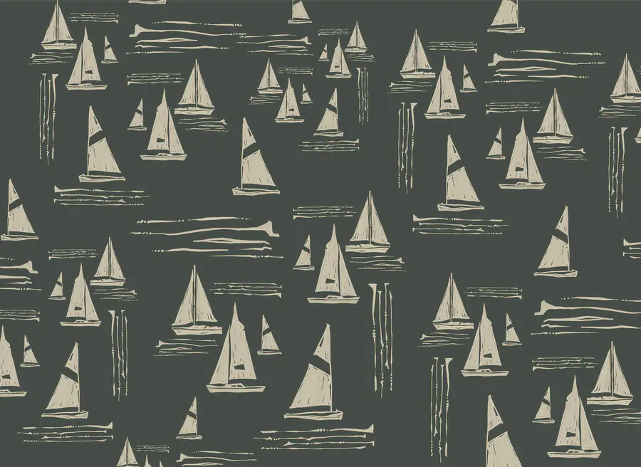 Fotobehang Patroon van zeilboten op een donkere achtergrond