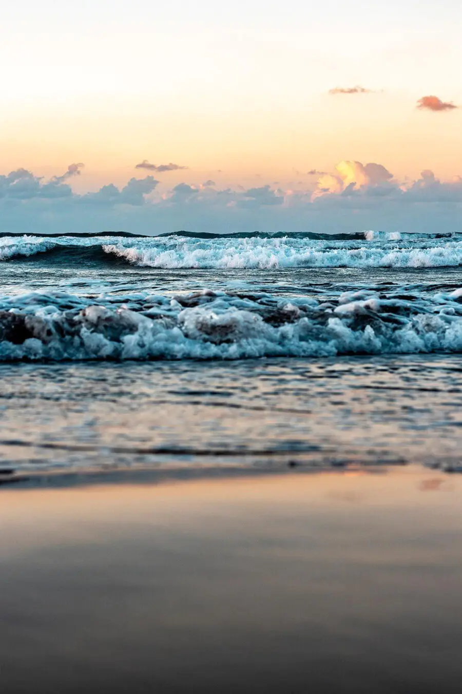 16.08 €8.85 €Fotobehang Een strand met golven en een roze lucht