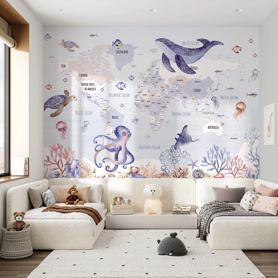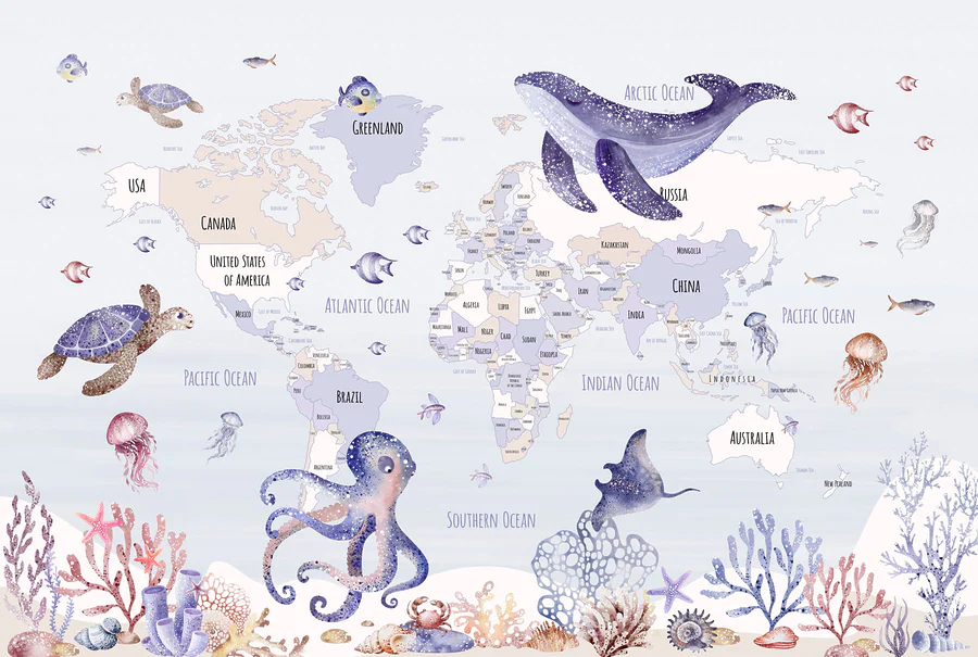 15.51 €9.30 €Fotobehang Wereldkaart met dieren en vogels